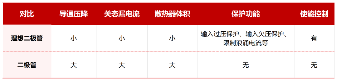 理想二極管與二極管對(duì)比,優(yōu)勢(shì)總結(jié)如下: