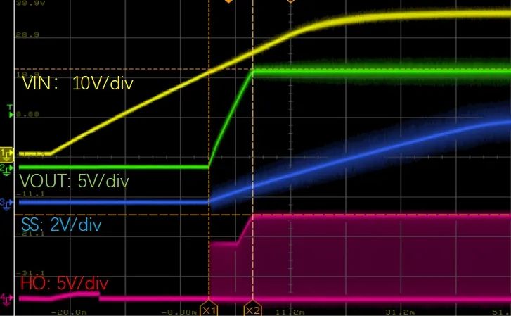 測試工況:VIN=48V, VOUT=12V, IOUT=10A(1min)