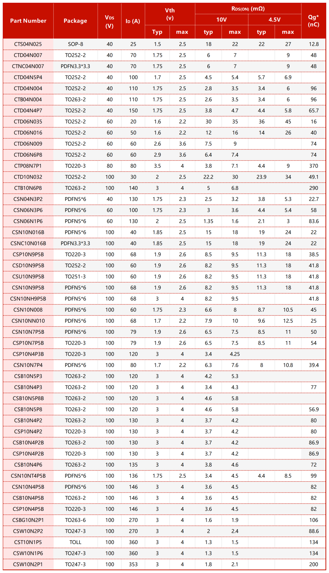 CSV3617可搭配鍇威特100V以下MOS選型表: